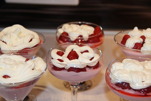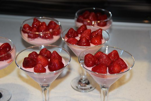 Смесь йогурт-желатин разложить в креманки и поставить в холодильник примерно на 30 минут. Когда смесь станет плотной, украсить клубникой.