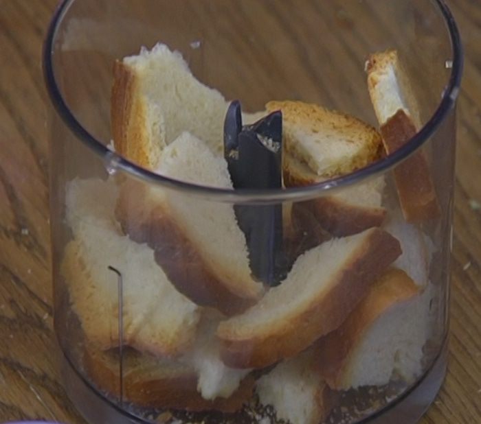 Хлеб измельчить в блендере в крошку.