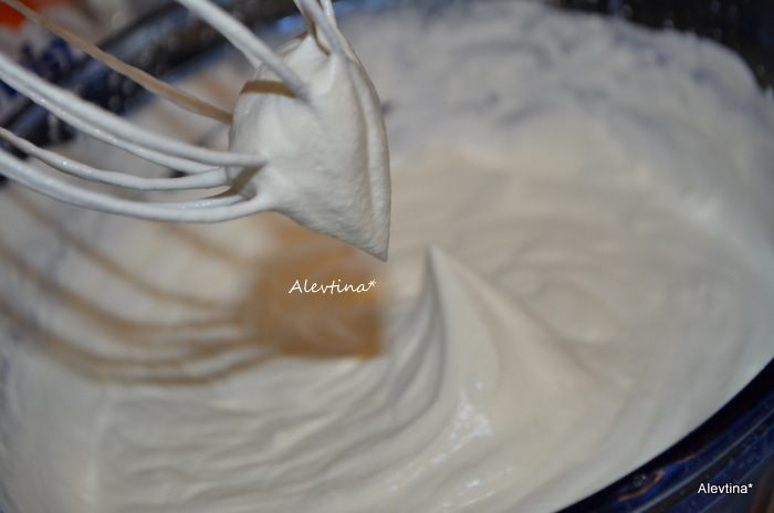 Сливки 1 ¾ стакана взбить на средней скорости до средних пиков.