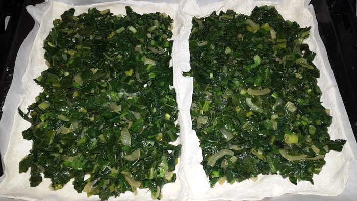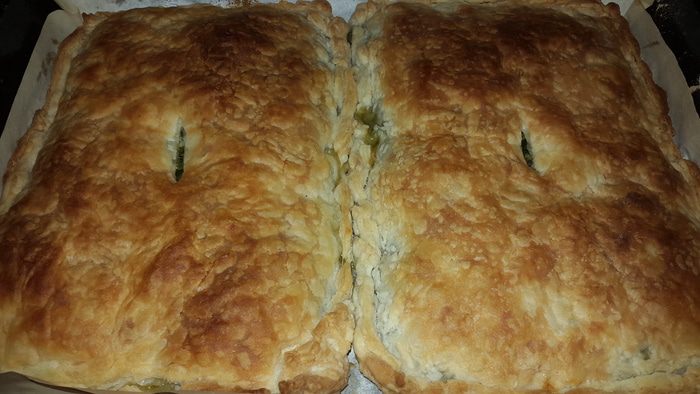 Пироги слоёные со шпинатом, листовой капустой и луком пореем