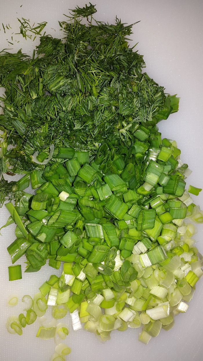 Зеленый лук и укроп мелко режем.