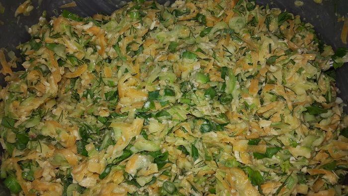 Кабачки и тыкву натираем на крупной терке и хорошо перемешиваем.