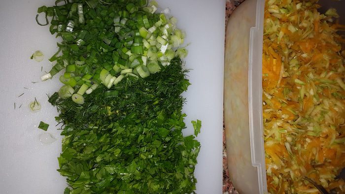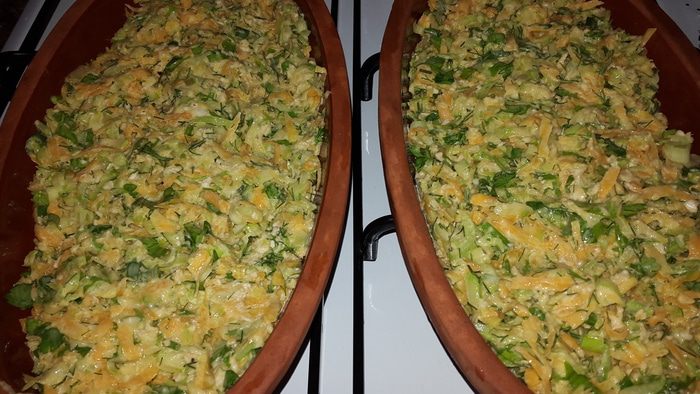 Кабачково-тыквенная запеканка с зеленью и овсяными хлопьями