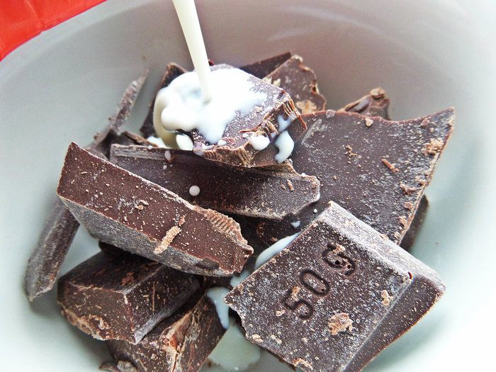 Для начинки растопить на водяной бане поломанный шоколад с добавлением сливок или молока немного.
