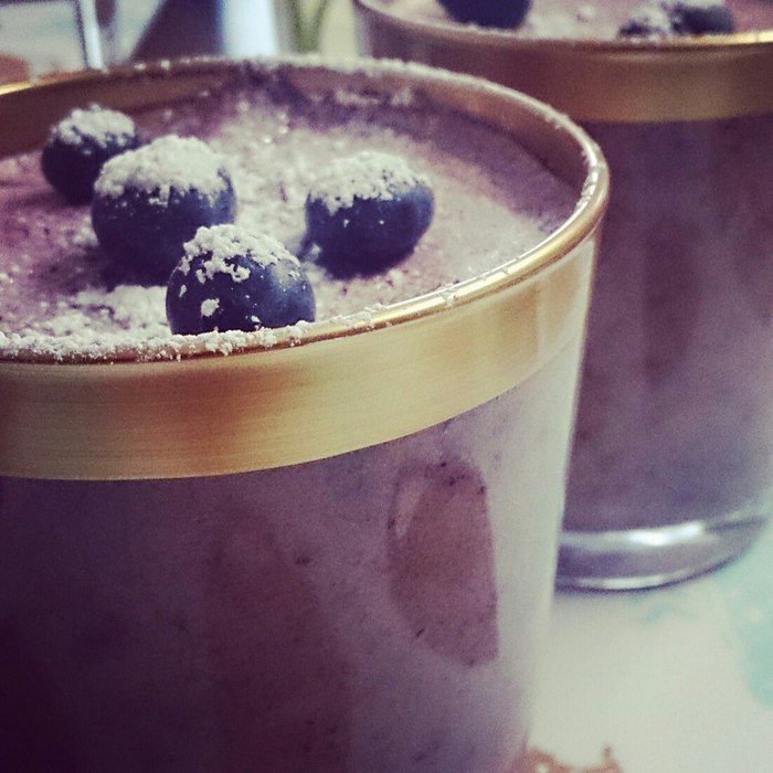 Вообщем-то, я на диете, но моя любимя подруга конечно же решила мне помочь и устроить праздник по этому поводу, "закатить" первое весеннее барбекю. Ну а какой праздник без десерта? Пошла я в Интернет и нашла очень симпатичную никзкокалорийную идею - Самбук. У китайцев через дорогу, чтобы далеко не ходить, самой свежей ягодой оказалась черника, поэтому мой самбук черничный. Чтобы испытывать еще меньше вины перед своей диетой, заменила сахар из рецепта на сироп агавы (1:1). Получилось мило, нежно, чернично и вкусно.