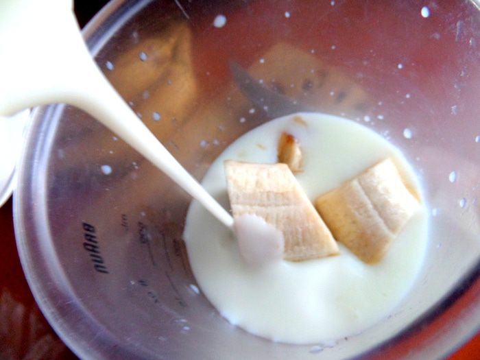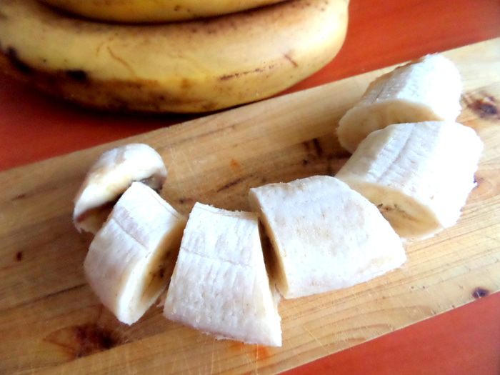 Банан разрезать на кусочки.
