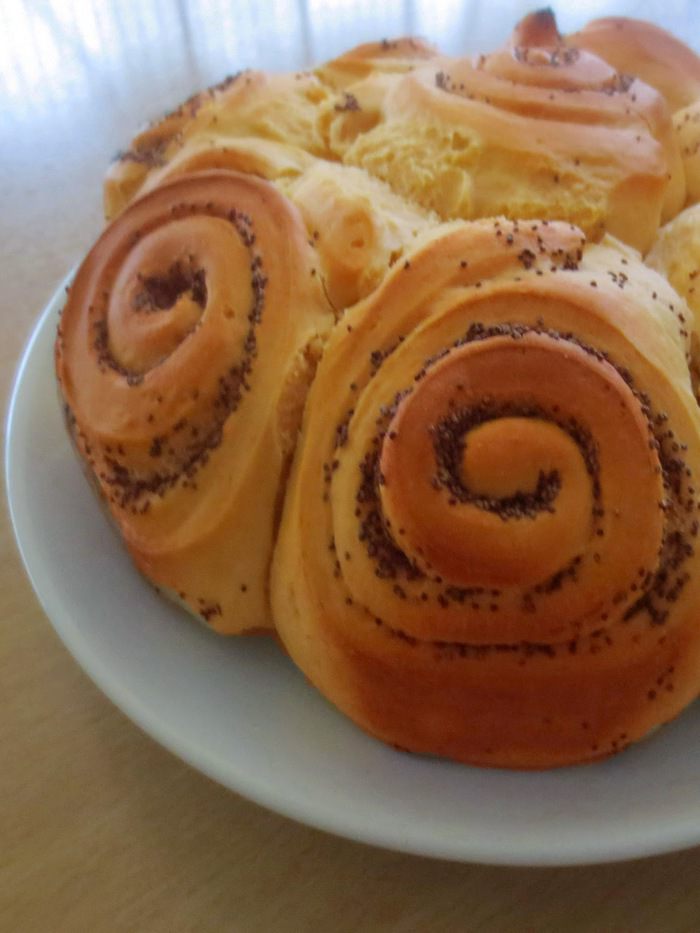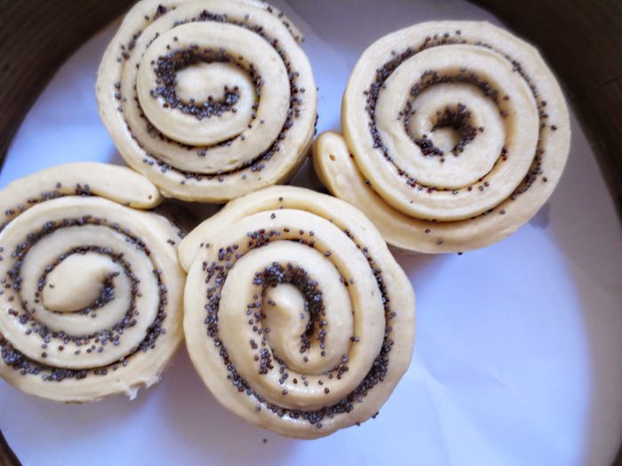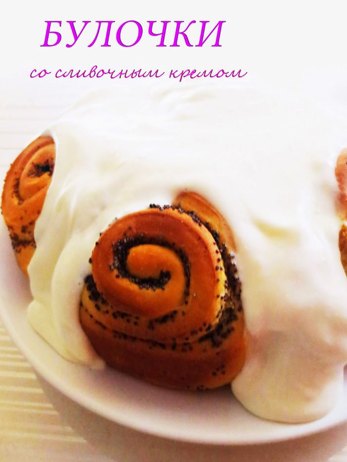 Изначально было желание испечь "Синабоны" , но так как корица в нашей семье не принимается вообще,то я решила пойти другим путем. Вместо начинки из корицы, коричневого сахара и сливочного масла, я использовала мак и сахарную пудру. Для крема использовала сливки, сахарную пудру и греческий йогурт.