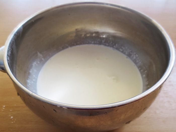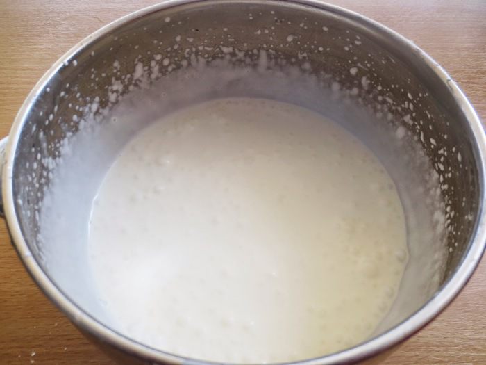 Дрожжи развести в теплом молоке с 1 ст.л. сахара и 2 ст.л. муки. Перемешать, оставить на 15 минут. Опара должна подняться.