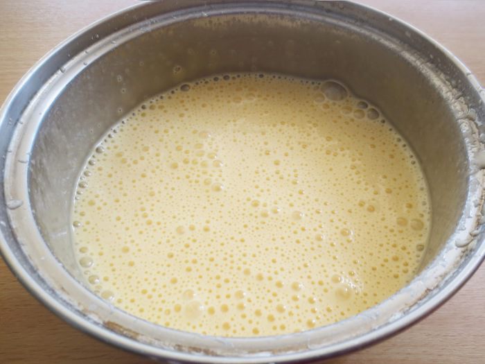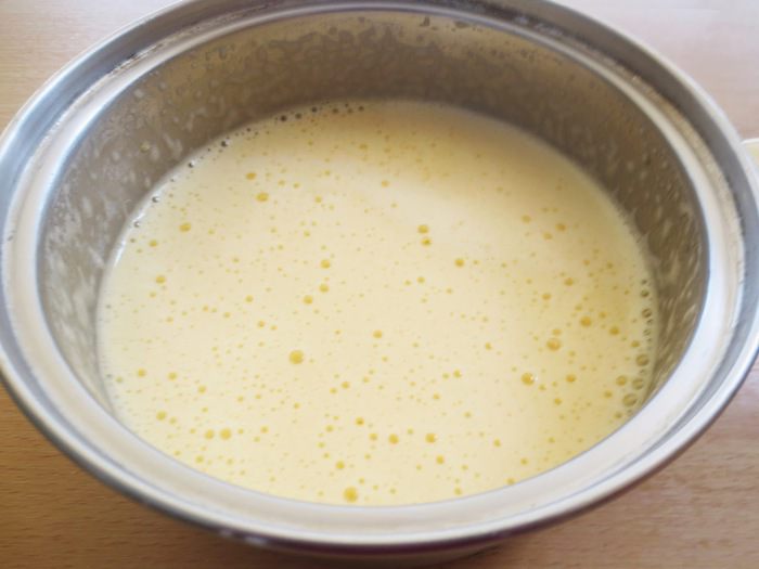 В большой миске взбить яйца комнатной температуры с оставшимся сахаром