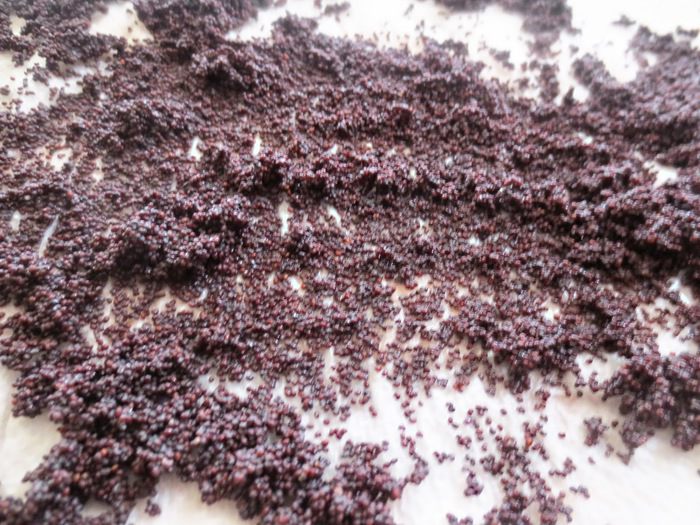 Сливаем воду и пересыпаем мак на салфетку. После того как впитается вода, мак смешать с сахарной пудрой.