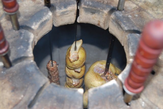 Жарим в тандыре (в нем получается очень вкусно) на чуть горящих углях. Готовится около 10-15 минут.