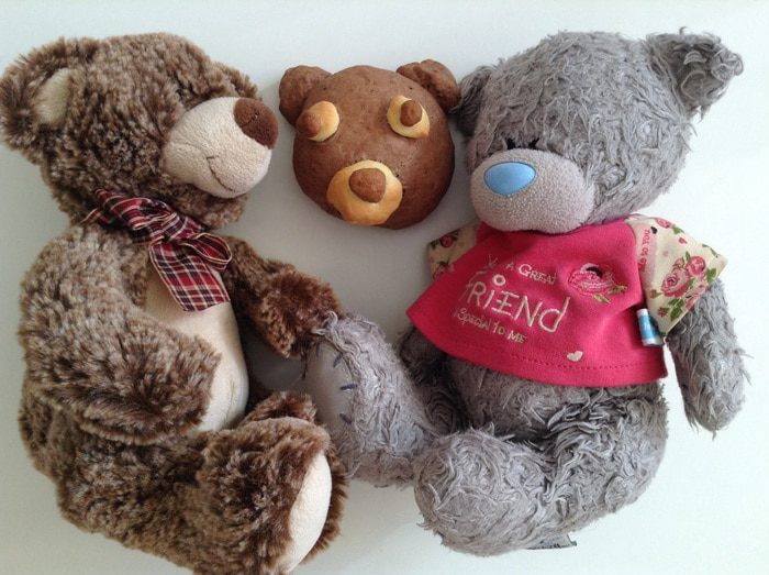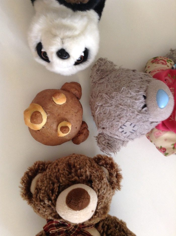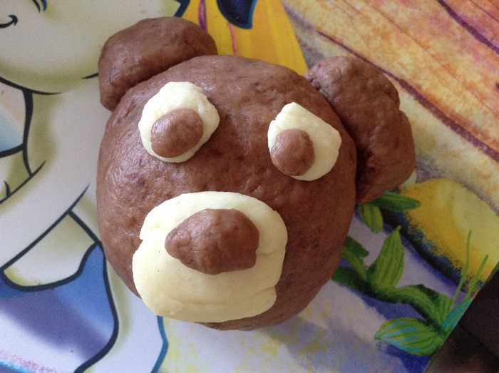 Тесто я делала весь объем, а мишек лепила из 1/2 части теста.