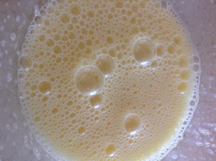 Когда опара вспенится, то в нее добавить яйцо, которое взбить с 3 ст.л. сахара.