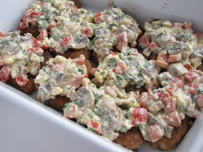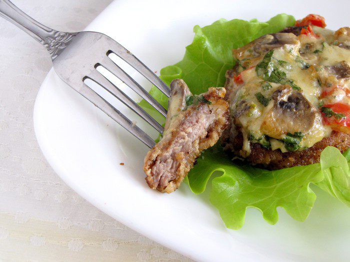 Кто же не любит ромштекс - это замечательное сочное мясо в панировке?! Сегодня предлагаю вам приготовить не совсем обычные ромштексы, а под шубкой из овощей, грибов, голубого сыра и хрена. Такие ромштексы можно приготовить и в пир, и в мир. Выглядят они довольно празднично, а готовятся не сложно.