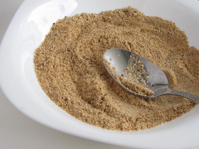 Приготовить панировку. Сухари смешать с солью и перцем.
