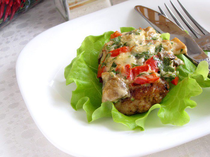 При подаче украсить зеленью, на гарнир подать овощной салат.