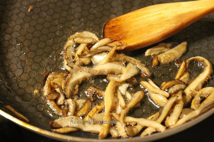Обжарить сначала морковь с луком до золотистого цвета. Переложить на тарелку. Затем обжарить в этой же сковороде грибы. Вскипятить бульон, добавить к нему обжаренные овощи. Варить 10 минут, посолить и выключить огонь. В отдельной кастрюле отварить макароны, согласно инструкции на упаковке.
