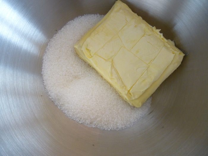 Сливочное масло комнатной температуры взбиваем с сахаром 3 минуты.