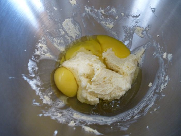 Добавляем яйца, взбиваем еще минут 5. Яйца тоже должны быть комнатной температуры.