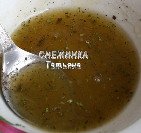Приготовим заправку. В миске соединяем мёд, лимонный сок, сухие травки, соль, перец, добавляем оливковое масло и всё хорошенько перемешиваем.