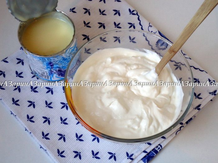 Сливки взбить до пышного состояния, добавить сливочный сыр (у меня домашний крем-чиз из кефира) и сгущенное молоко, аккуратно перемешать.