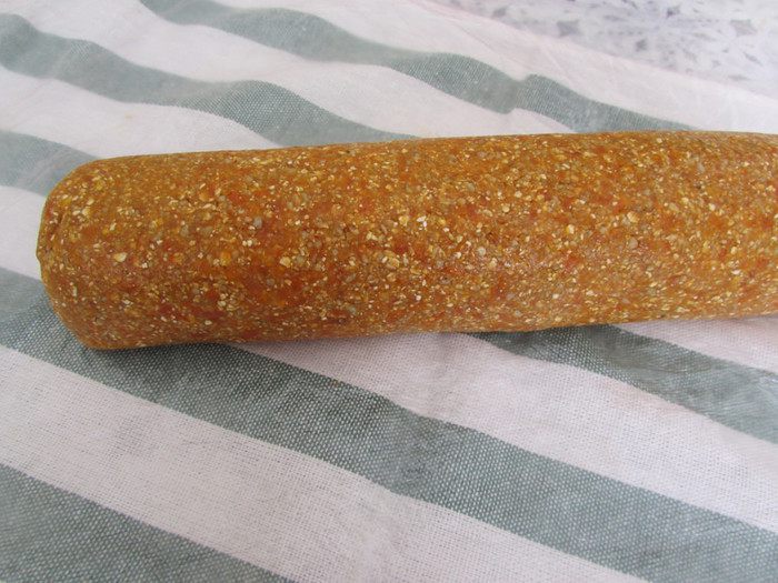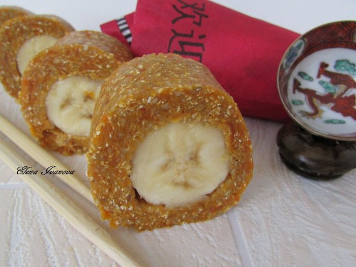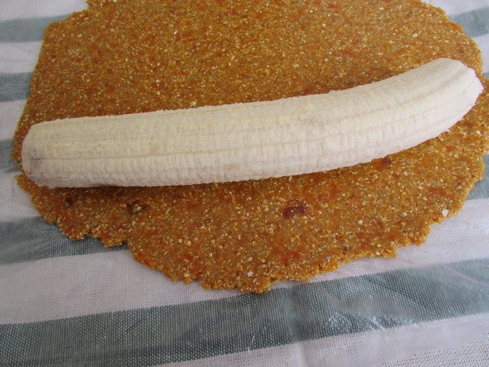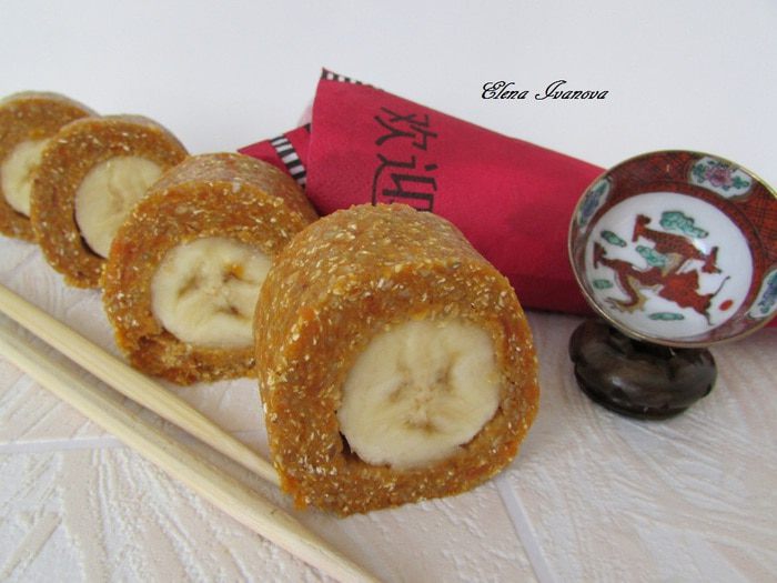 С помощью пищевой пленки скатать ролл, уплотняя его руками.