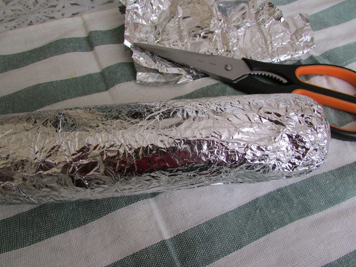 Готовый ролл завернуть в фольгу и отправить в морозильную камеру на 3 часа.