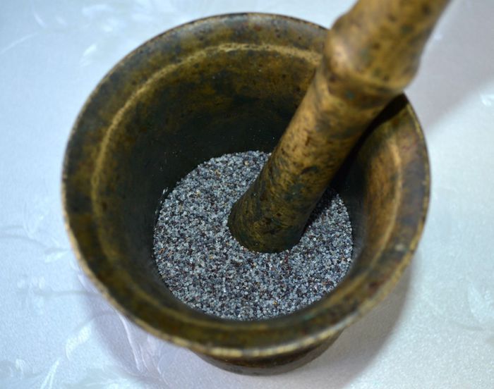 Приготовить маковую начинку. Мак растереть в ступке с сахаром.