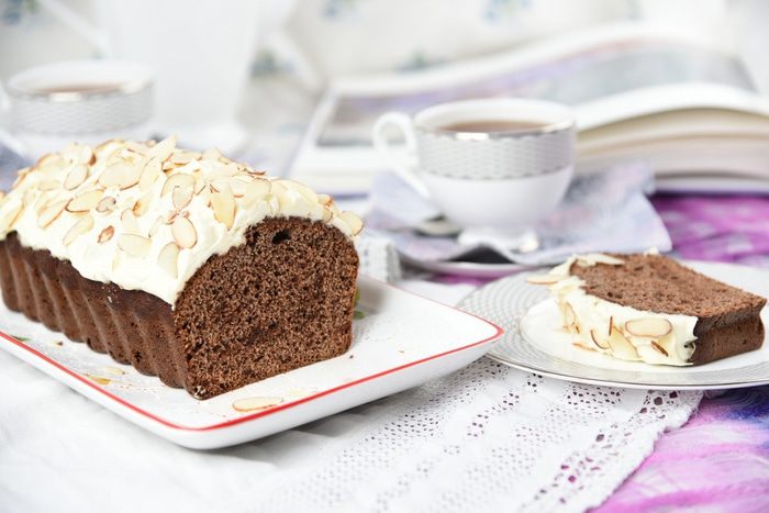 Рецепт от Ирины Чадеевой. Я лишь добавила крем и миндальные лепестки, которые очень хорошо оттенили вкусы кекса. Для крема нам понадобится сливочный сыр комнатной температуры - не забудьте достать заранее.