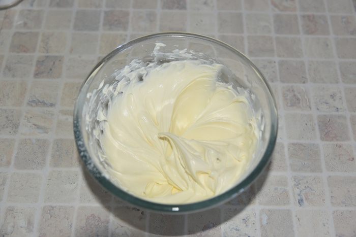 Приготовим крем. Сливочный сыр и сметану взбить с сахарной пудрой, добавить ванильный экстракт.