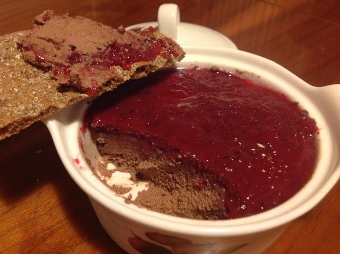 Печенку пюрировать блендером, выложить в форму, сверху выложить желе, дать остыть. Все, паштет готов к употреблению, приятного аппетита!
