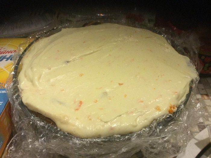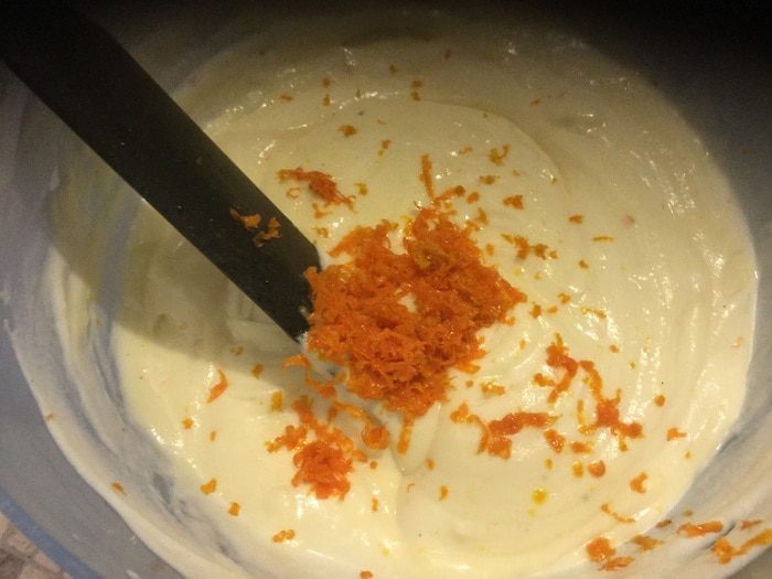 Белый шоколад растопить на водяной бане (белый ведет себя капризнее темного, с ним чуть дольше возни), добавить цедру апельсина, вмешать маскарпоне (комнатной температуры пожалуйста, это просьба от ваших рук:), вы им сильно облегчите работу). Взбиваем сливки и мягкой ложкой вводим в шоколадную смесь.