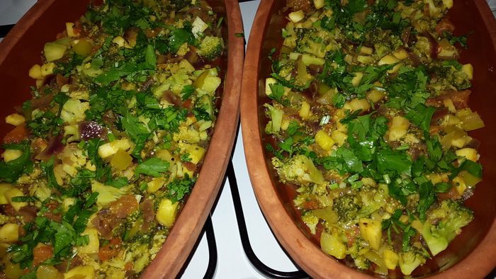Постный "омлет" с овощами, запеченный в глиняных тарелках