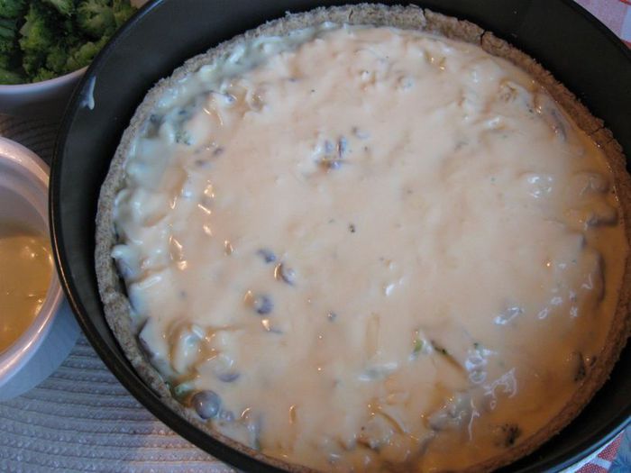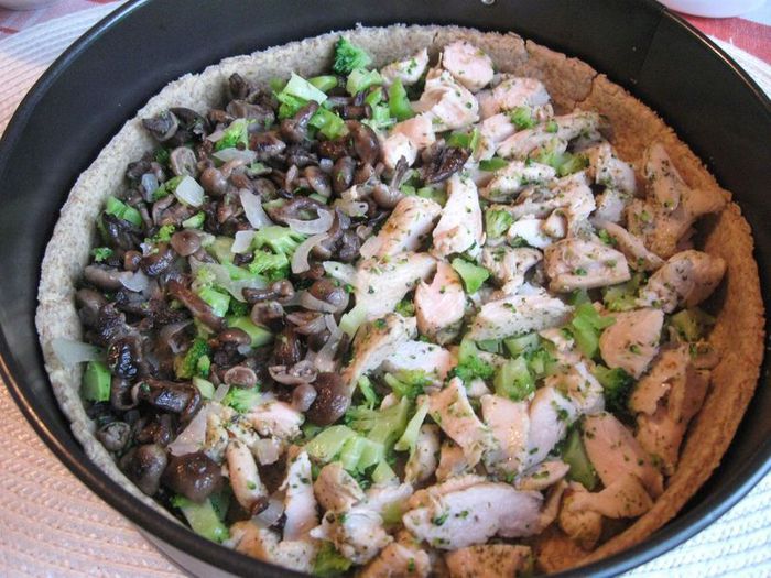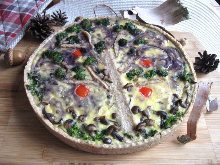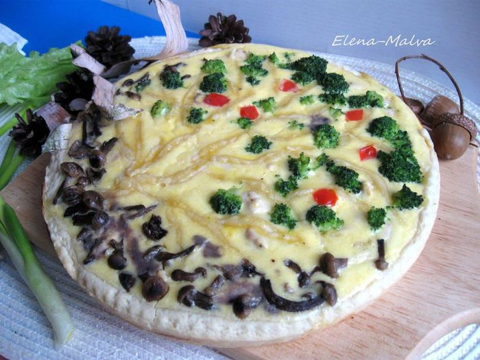 Киш с курицей, опятами и брокколи