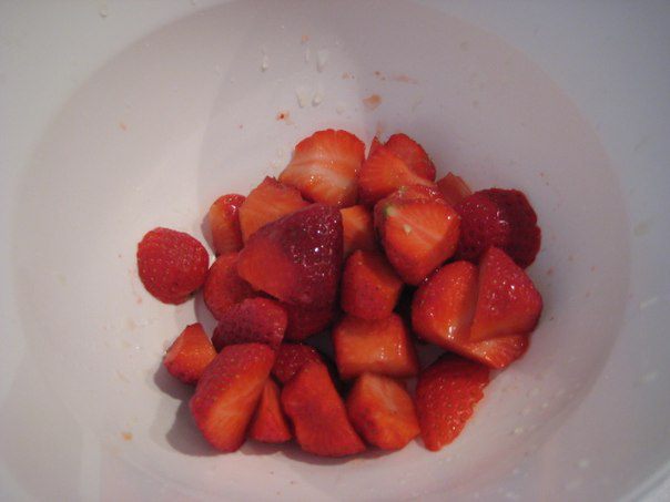 Клубнику пробить блендером с 2 ст. л. сока агавы, 1 ст. л. лимонного сока.