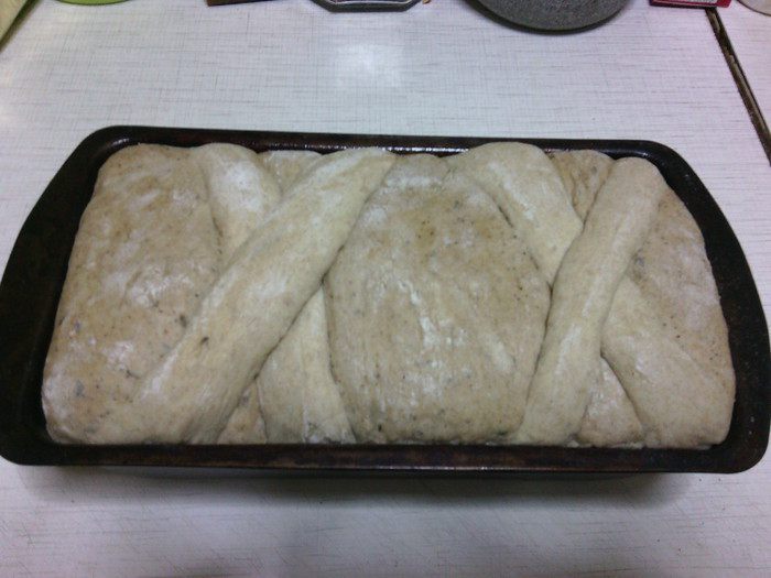 Положить в форму, прикрыть сверху полотенцем и оставить на расстойку на 40-50 минут.