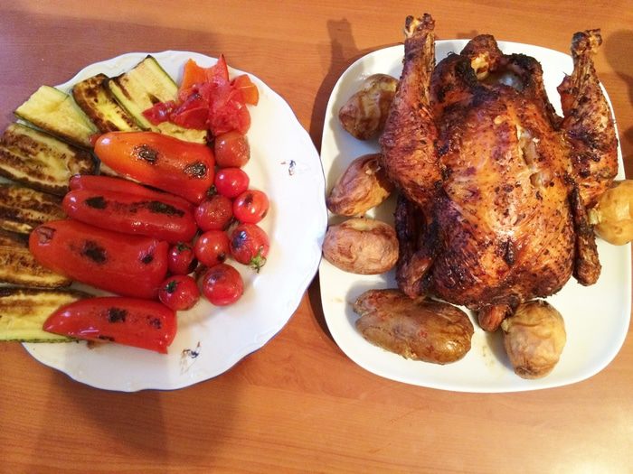 Фазан получился деликатнейшим - нежное, сочное темное мясо просто тает во рту, корочка тонкая, хрустящая и острая. Печеные овощи, как нельзя лучше аккомпанируют основному блюду. Ну и, конечно, все с легким ароматом дымка