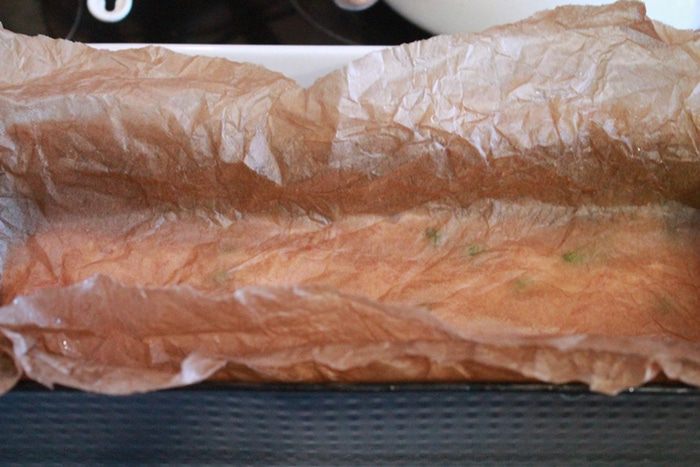 Сверху паштета положите еще один промасленный лист бумаги. Поставьте противень с паштетом в духовку и запекайте 35-40 минут, готовый паштет должен быть твердым.