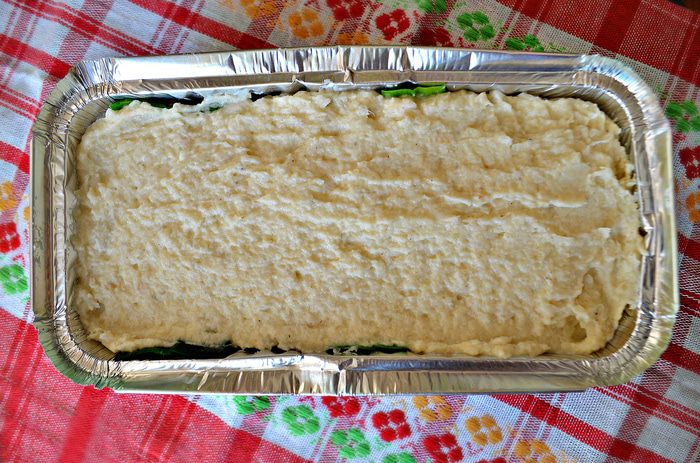 Сверху выложить капустное суфле. Запекать при температуре 170 градусов около 30 минут.