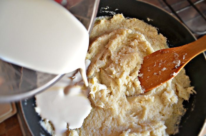 Влить сливки и варить до загустения массы около 5 минут.