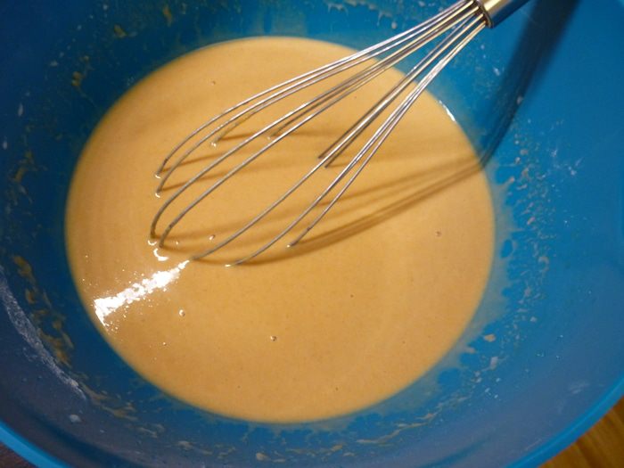Добавляем растопленное сливочное масло. В конце добавляем горячее молоко до желаемой консистенции (мне хватило 300 мл). Оставляем смесь на 15-30 минут отдохнуть.