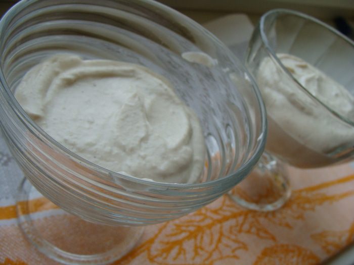 Добавить половину белого шоколада (15 г) и половину растопленного желатина (25 мл). Влить 30 мл 10% сливок, всыпать 2 ч. л. ванильного сахара (желательно с натуральной ванилью). Еще раз взбить и положить в креманки.