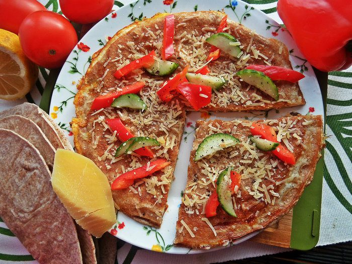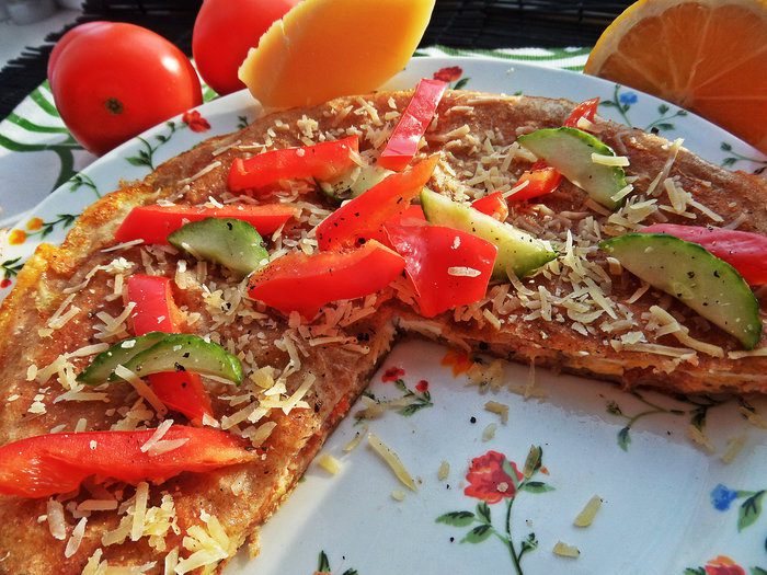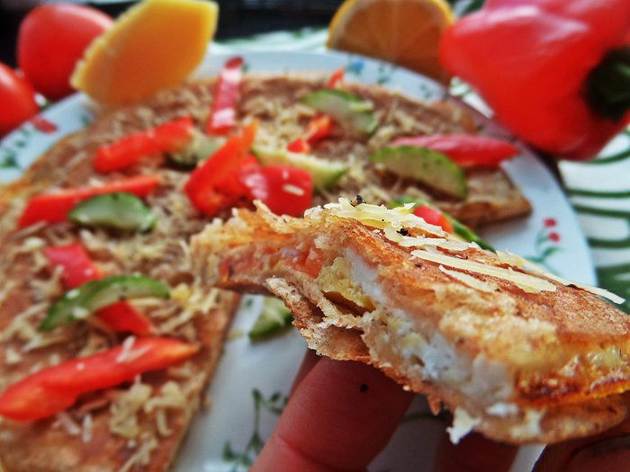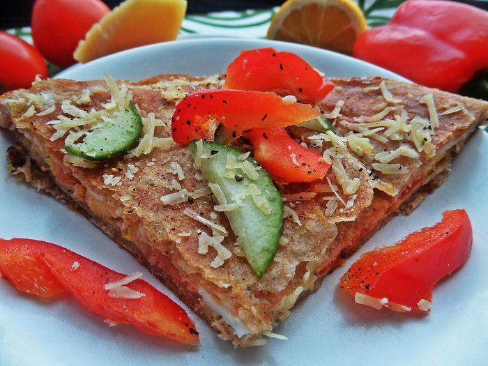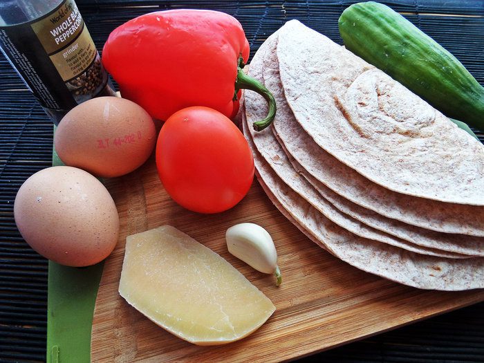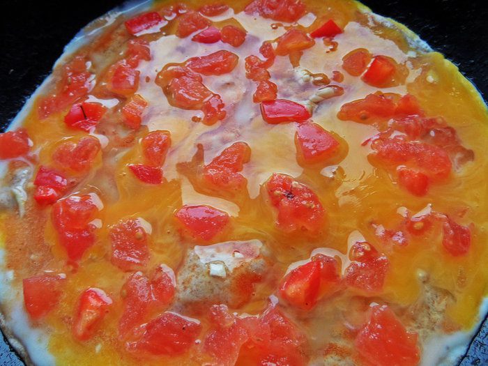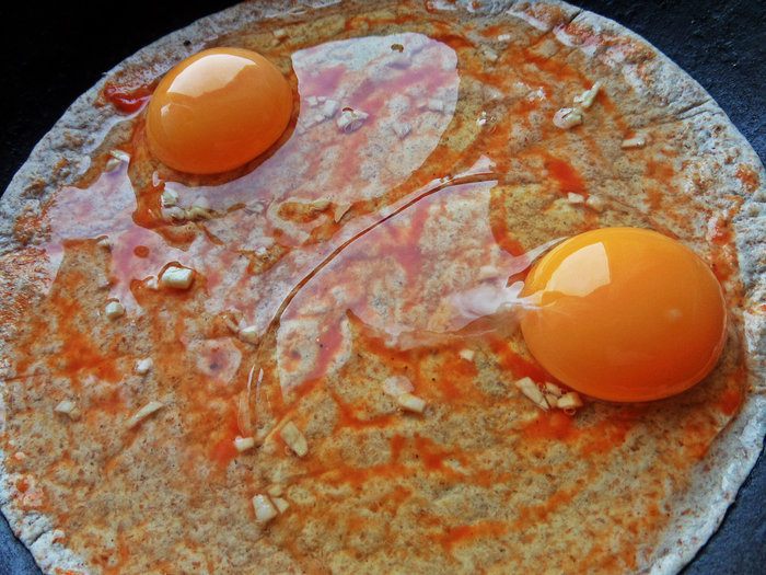 Обычно я готовлю на завтрак или перекус так: кладу одну лепёшку, взбиваю яйцо, размазываю его и сверху накрываю второй лепёшкой, прижимаю и переворачиваю.