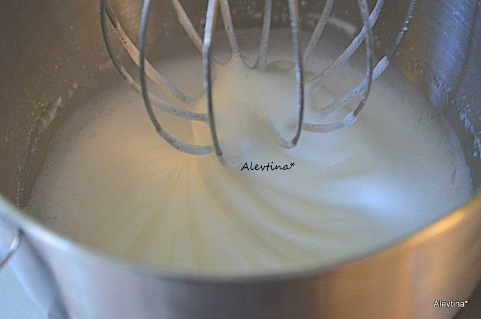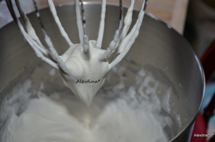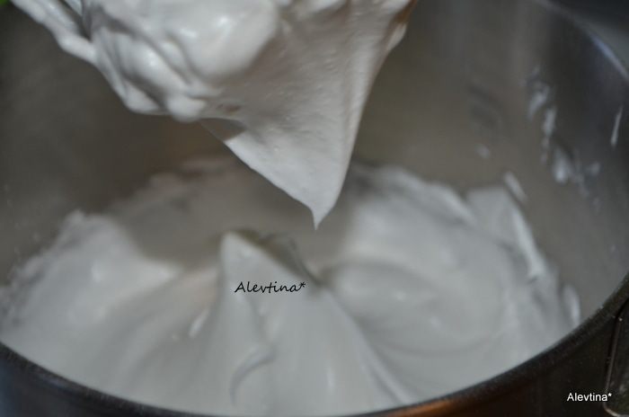 Взбить белки до мягких пиков, добавить винный камень, если имеется или на замену используем лимонный сок капельку. Взбивать до крупных пиков. Добавляем мелкий сахар или сахарную пудру по 1 ст.ложке, после каждого раза продолжаем взбивать и так до конца.