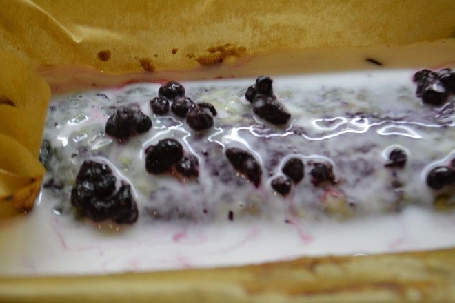 Добавить 70 г черники и аккуратно перемешать. Если черника замороженная, разморозить и слить жидкость.