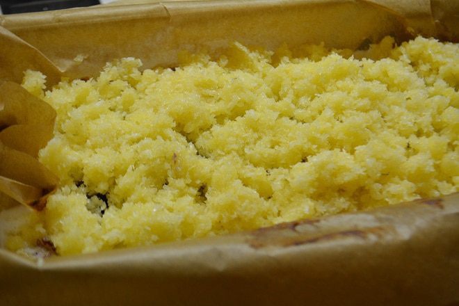 выложить кокосовое тесто по всей поверхности. Запечь еще 20-25 минут при 170С.