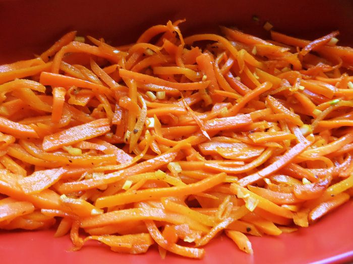 Морковка пока ещё тёплая, перекладываем её на блюдо.
