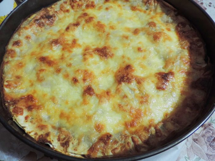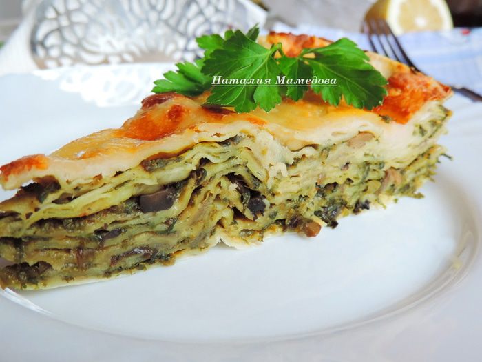 Затем добавляем на сковороду шпинат и обжариваем все вместе. Я шпинат разморозила заранее, хотя этого можно и не делать.