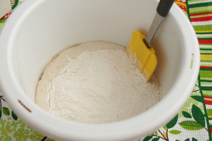 Затем просеять муку, добавить соль, сахар.