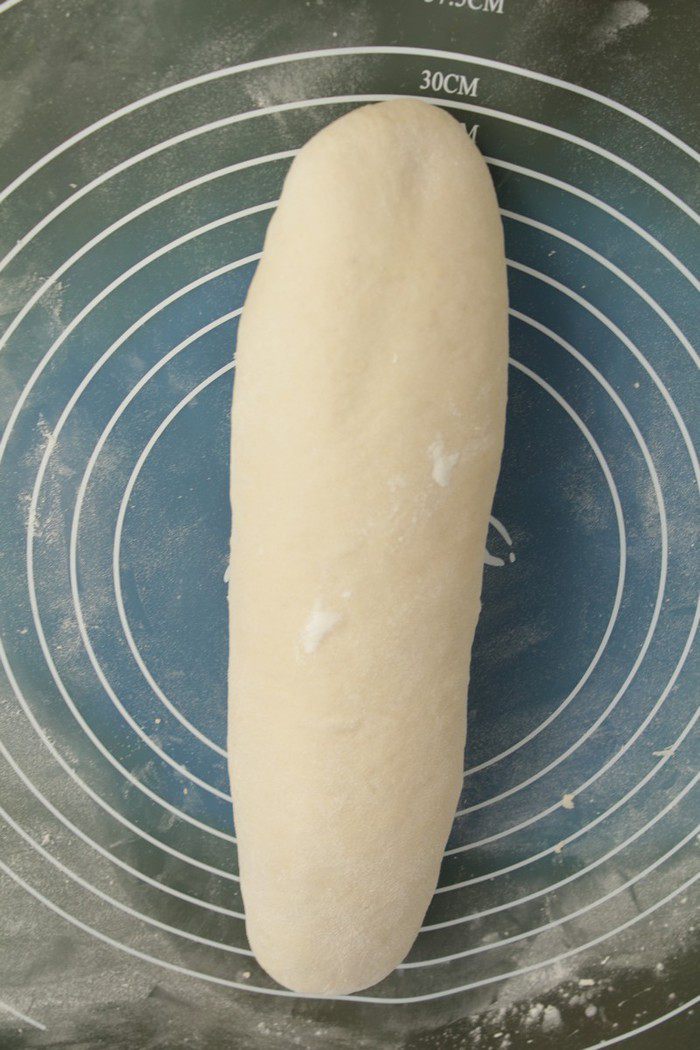 Раскатать тесто в прямоугольник, скрутить в длинный рулет, защипнуть края и уложить швом вниз. Накрыть и оставить на 45 мин.